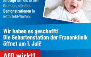 Fantastische Nachrichten zum Internationalen Frauentag aus Bitterfeld-Wolfen. Unsere Anträge im Kreistag Anhalt-Bitterfeld, unsere erfolgreichen Demonstrationen in der Region und unsere Petition mit über 2.200 Unterschriften, die wir dem Kreistag übergaben, waren letztlich erfolgreich. Wir konnten den Beschluss des Aufsichtsrates des Gesundheitszentrums in Bitterfeld kippen, den Schließungsbeschluss im Kreistag verhindern und im Kreistag für die Wiedereröffnung [...]